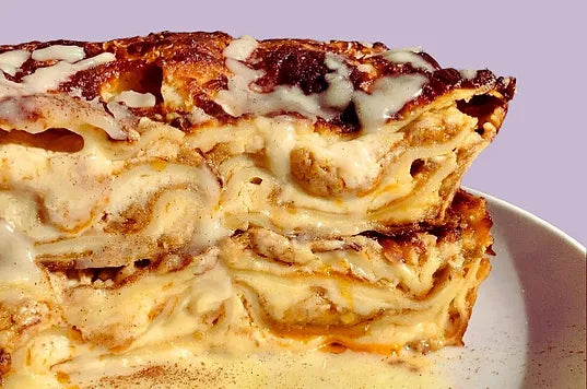 Keep frozen lasagna in freezer. Do not thaw prior to cooking. Remove paper lid prior to cooking and preheat the oven to 400. Cover the lasagna loosely with tin foil and then place into preheated oven. Bake for 50 mins covered and then remove tin foil. Continue cooking 10-15 minutes until the cheese is golden brown and bubbling. Remove from the oven and rest the lasagna for 5-10 minutes prior to cutting.